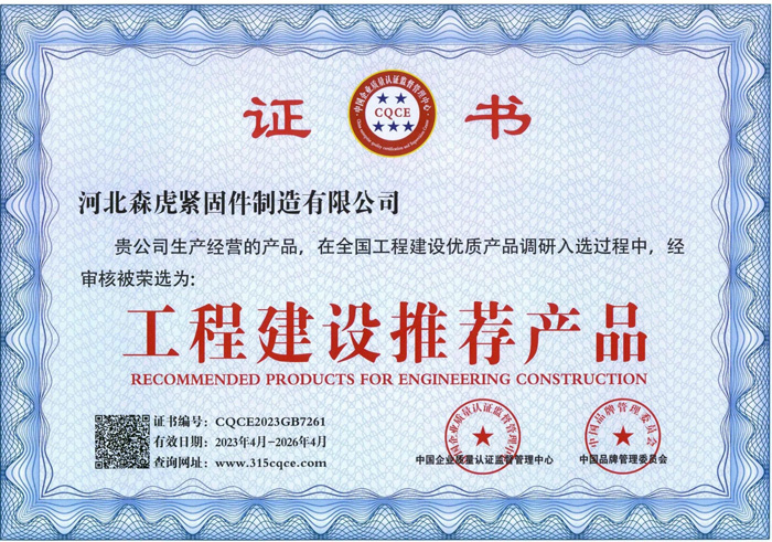 河北森虎緊固件制造有限公司成立于2011年,是建廠較早的緊固件企業(yè)。西臨京廣線(xiàn),東臨京深高速,地理位置優(yōu)越,交通便利。 主要生產(chǎn):化學(xué)錨栓、機(jī)械錨栓、定型化學(xué)錨栓、高強(qiáng)度8.8級(jí)化學(xué)錨栓、自切底機(jī)械錨栓、車(chē)修壁虎,膨脹螺栓,植筋膠。 質(zhì)量方針:先進(jìn)技術(shù)、科學(xué)管理、優(yōu)良品質(zhì)、用戶(hù)滿(mǎn)意; ...